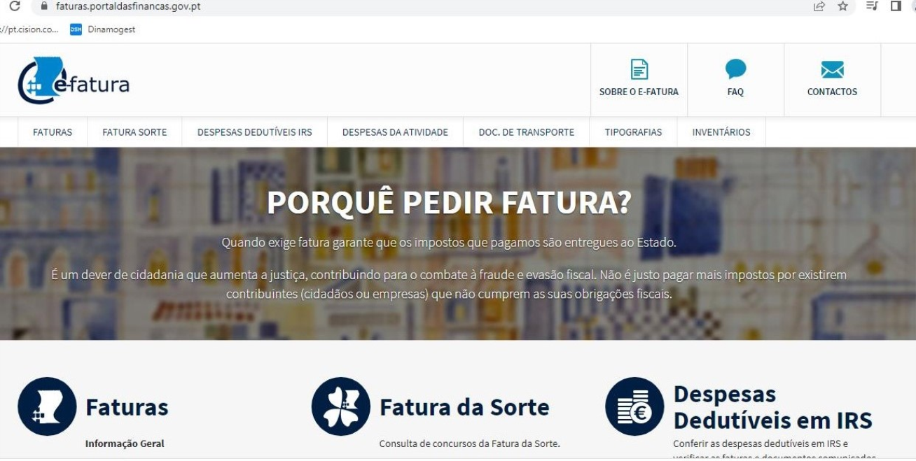 O e-Fatura é um serviço online das Finanças que permite aos cidadãos fazer a gestão das faturas de bens e serviços adquiridos. Na plataforma e em qualquer altura, o contribuinte pode verificar, registar e resolver pendências das faturas emitidas com o seu número fiscal. Pode também monitorizar as deduções em sede de IRS a que tem direito a cada momento.